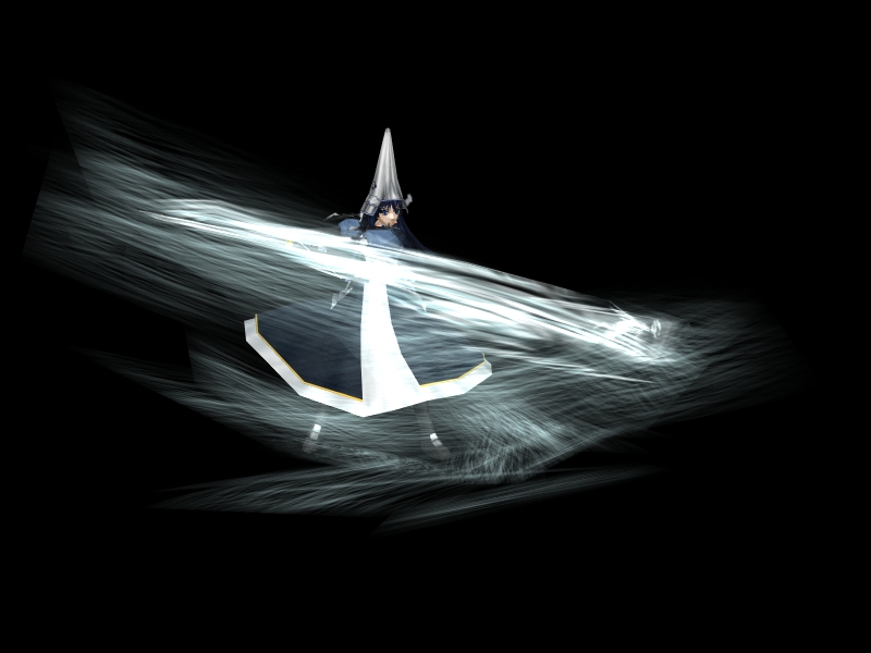 イメージとしてはゲーム無いでの通常攻撃の構えです 意外と刀の振り終わりの形に苦戦しました 手がクロスしつつ刀の向きは外側へ 微調整が肩・上腕~手までを少しずつ調整という感じで ズレる直すの繰り返しでした 下は途中経過のエフェクトとモデルを合わせたチェック画像です 現段階は剣の斬激と風のエフェクトのみ これにプラスで衝撃波・光と足して完成させる予定 加算で板ポリを載せて厚みを出してるのですが 3DSNSのビューワー対応してるのかな・・・? 詳しいエフェクトの作成については完成したときにまとめて書きます